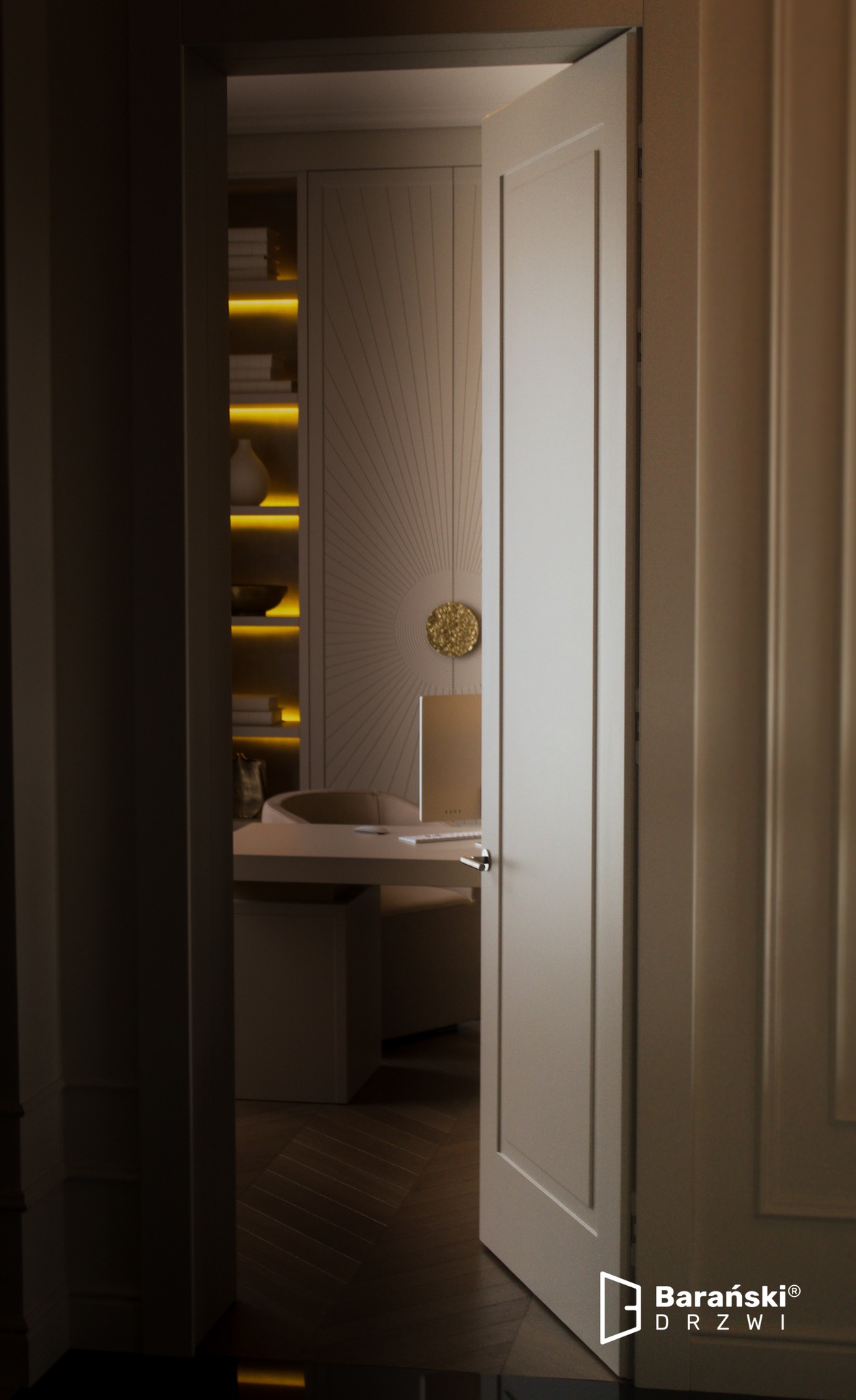 Masz podłogi drewniane i chcesz dobrać do nich drzwi firmy Barański, aby stworzyć ciekawą aranżację? Możesz skorzystać z wielu możliwości. Jeśli cenisz styl skandynawski, do drewnianej podłogi wybierz białe drzwi Retro C.0 z kolekcji Barański Optimo. Stawiasz na nowoczesność i kontrasty? Do jasnego wnętrza wybierz ciemne drzwi Barcelona z linii Barański Premium. Szukasz jasnego skrzydła, które będzie pasowało do jasnych paneli podłogowych? Postaw na drzwi w takich odcieniach jak dąb czy orzech. Prestige B.1 lub Grande A.A – oto wybrane propozycje z kolekcji Barański Optimo.
